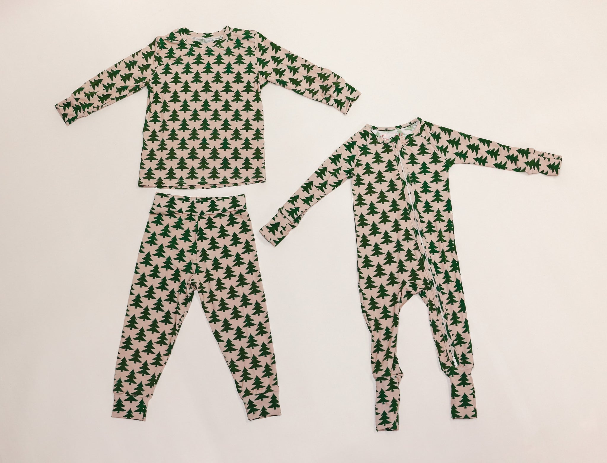 Sweet dreams under the pines. This buttery-soft bamboo sleeper wraps your little one in comfort with our signature Evergreen print — a simple, timeless holiday favorite.